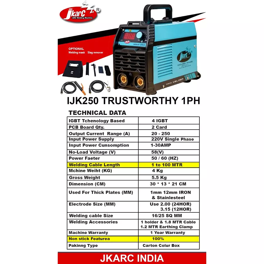 JK ARC 250Amp Single Phase Inverter ARC Welding Machine JK Arc 250
